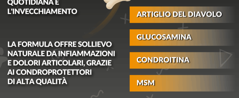 AZIONE NATURALE CON ARTIGLIO DEL DIAVOLO E MSM: Sollievo immediato senza rinunciare alla naturalità. La nostra formula contiene Artiglio del Diavolo extra forte e MSM integratore, noti per le loro proprietà nel contrastare infiammazioni e dolori articolari. È l’alternativa naturale ideale per chi cerca un supporto per articolazioni cane senza additivi chimici, aiutando a gestire i sintomi di displasia, artrite e problemi ai legamenti.