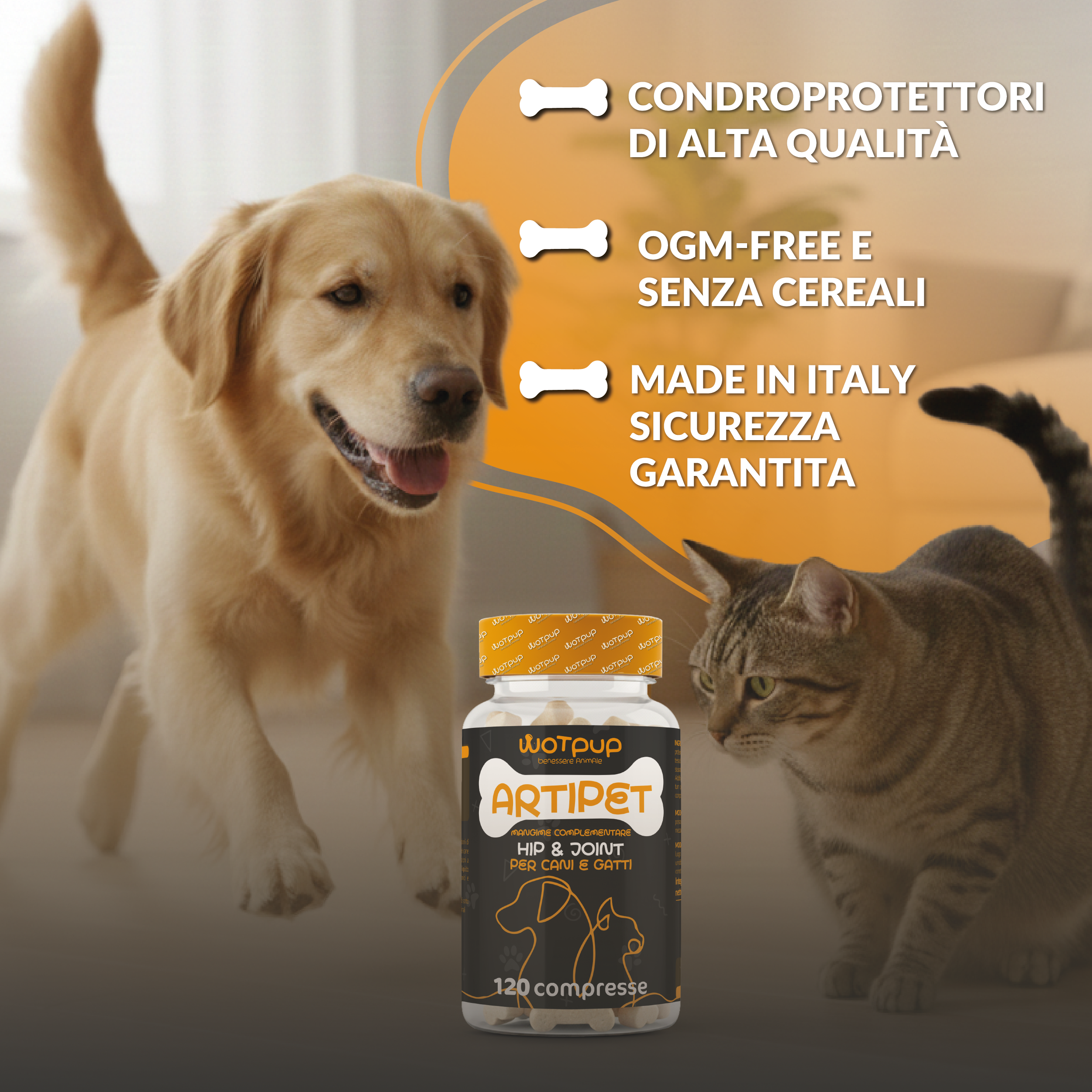 ECCELLENZA MADE IN ITALY E SICUREZZA GARANTITA: Scegli la sicurezza del Made in Italy. Il nostro integratore per articolazioni cani è prodotto nei migliori laboratori italiani seguendo standard qualitativi rigorosi. Formula OGM-free e senza cereali, studiata per garantire la massima biodisponibilità degli ingredienti. Un prodotto affidabile, sicuro ed efficace per garantire al tuo migliore amico una vita lunga, attiva e libera dal dolore.